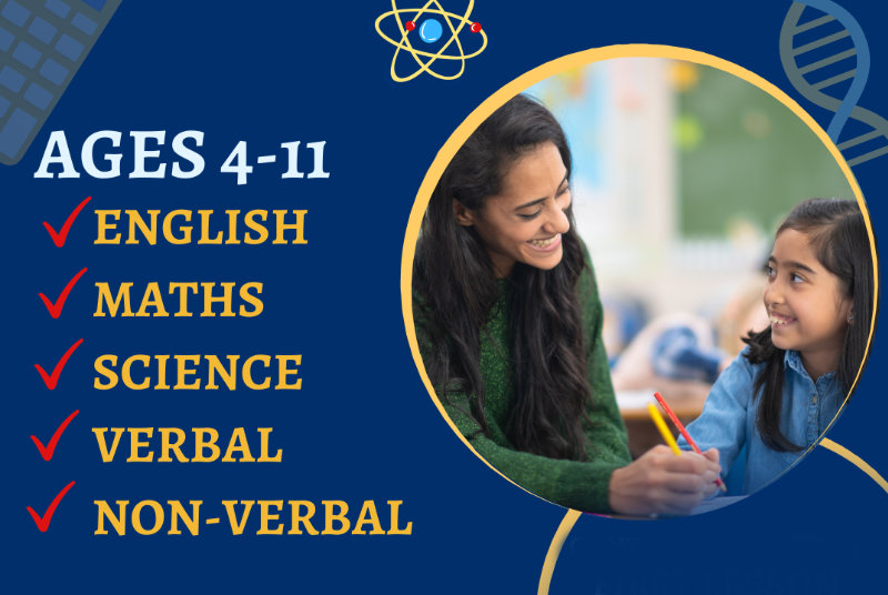 Quantum Tuition offers expert tutoring for children aged 4-11, specialising in English, Maths, Science, Verbal, and Non-Verbal subjects.