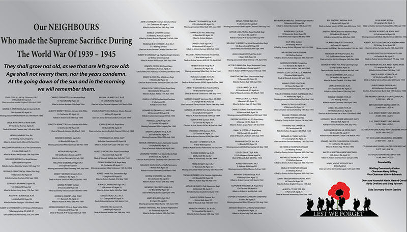 You can check all our neighbour names on the plate by clicking the following link: Watling-Community-Centre-WWII-Mermorial.pdf