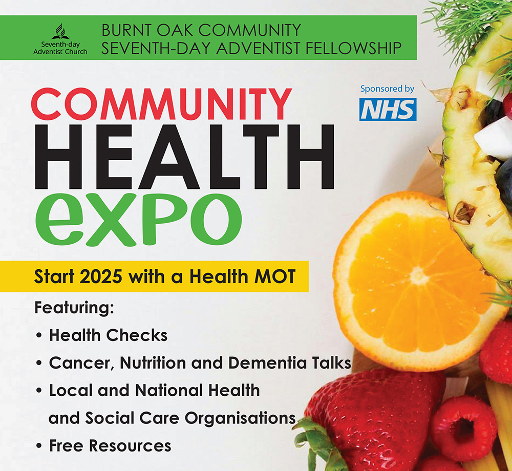 As we step into a new year, there's no better time to prioritize your health and well-being. The Burnt Oak Community Seventh-day Adventist Fellowship invites you to kick off 2025 with a rejuvenating and empowering event: the Community Health Expo, sponsored by the NHS.
