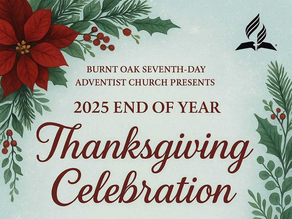 The Burnt Oak Seventh-day Adventist Church warmly invites the entire community to join us for our annual End of Year Thanksgiving Celebration!